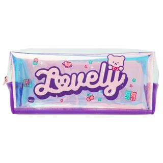 Túi Đựng Bút ARTBOX Hàn Quốc PVC Màu Tím Hologram Họa Tiết Chú Gấu Hoạt Hình Đáng Yêu