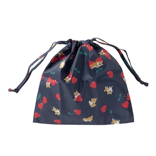 Túi Dây Rút ARTBOX Hàn Quốc Màu Xanh Navy Họa Tiết Hoa Anh Đào Và Chú Chó Shiba