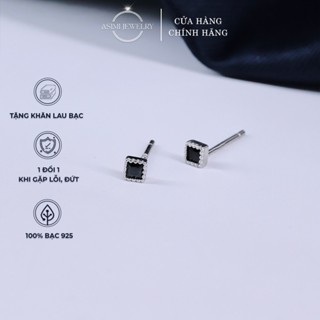 Đôi bông tai bạc nữ đính đá mặt ngôi sao Asimi, Bông tai bạc nữ nguyên chất 2 màu trắng đen Star Earrings KT03