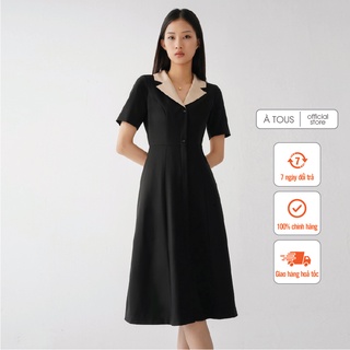Đầm công sở dáng xòe ÀTOUS FLORENCE cổ vest phối màu thiết kế hiện đại,thanh lịch