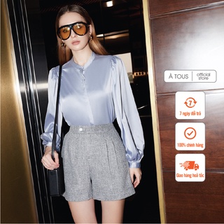Áo sơ mi lụa cổ tàu ÀTOUS JEN tay bồng kiểu dáng trẻ trung thanh lịch