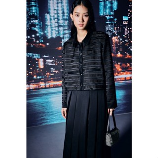 Áo khoác dáng ngắn ÀTOUS CECILE đen cổ bẻ chất taffeta cao cấp thiết kế hiện đại trẻ trung thanh lịch