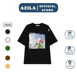 Áo thun Hoa Tuylip thương hiêu AZILA222 Tay lỡ From rộng chất liệu cotton 260Gsm