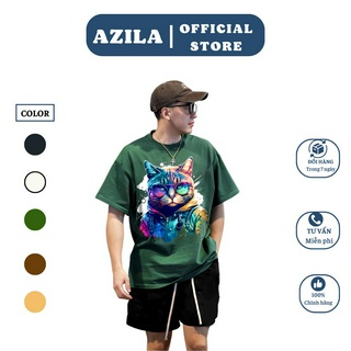 Áo thun Local Brand thương hiêu AZILA260 Tay lỡ From rộng in Mèo chất liệu cotton 260 GSM