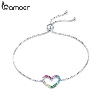Vòng Tay Bamoer SCB216 100% Bạc 925 Với Mặt Dây Hình Trái Tim Màu Cầu Vồng Có Thể Điều Chỉnh Dành Cho Nữ