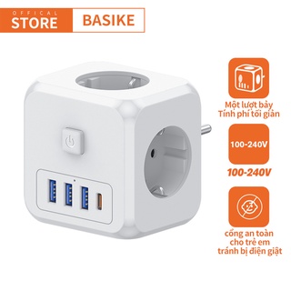 Ổ cắm điện đa năng BASIKE Sạc Nhanh PD 15W cổng USB + TypeC, 5 lỗ cắm tải 4000W an toàn - Bảo vệ gấp chín lần
