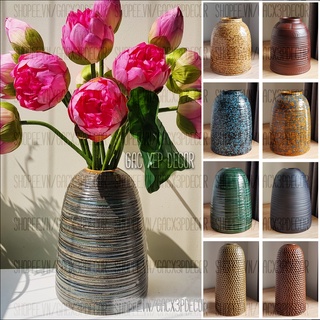 Lọ hoa gốm sứ dáng lọ sen men mộc và hoả biến - Bát Tràng