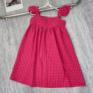 BEAR LEADER Đầm Đi Biển Mùa Hè 2023 Thắt Dây Tay Bay Kẻ Sọc Caro Màu Đỏ Mới Cho Bé Gái