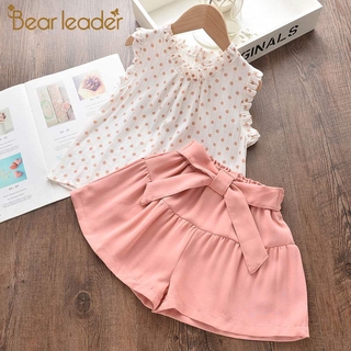 BEAR LEADER Set Áo Thun Ba Lỗ + Quần Short Thêu Hình Gấu Cho Bé Gái