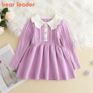 Đầm dệt kim BEAR LEADER cổ búp bê thời trang thu đông Hàn Quốc mới cho bé gái 3-7 tuổi