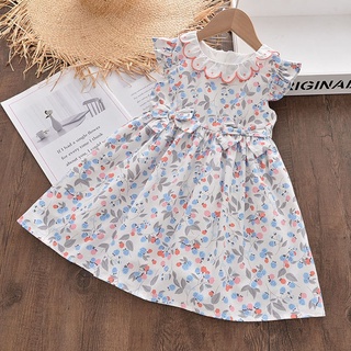 BEAR LEADER Đầm Cổ Búp Bê 2022 In Họa Tiết Hoa Dễ Thương Thời Trang Mùa Hè Cho Bé Gái