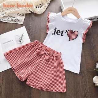 Set áo thun và quần Bear Leader họa tiết kẻ sọc caro phong cách mùa hè dễ thương cho bé gái 2-6 tuổi