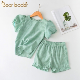 Set đồ 2 món BEAR LEADER gồm áo thun tay cộc in chữ gấu và quần màu trơn thời trang mùa hè cho bé gái