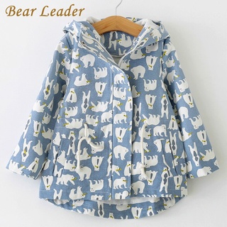 BEAR LEADER Áo Khoác Có Nón In Hình Gấu Bắc Cực Dễ Thương Thời Trang Mùa Thu 2023 Cho Bé Gái