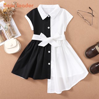 BEAR LEADER Đầm Ngắn Tay Phối Màu Đen Trắng Thời Trang Cho Bé Gái 1-6 Tuổi