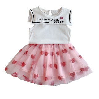 Bộ đồ 2 món BEAR LEADER gồm áo thun không tay và chân váy xòe họa tiết trái tim thời trang dành cho bé gái