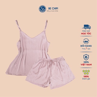 Đồ Bộ Nữ Mặc Nhà Hai Dây Màu Trơn Lụa Mềm Mịn Cao Cấp By Bechipi BN2027