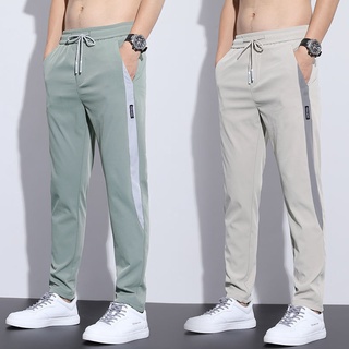 Quần dài BEFOYI LX7310 bằng lụa lạnh mỏng màu trơn dây rút phong cách doanh nhân cho nam
