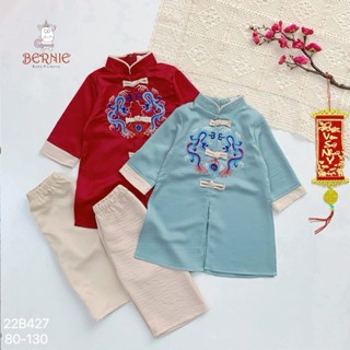 Set dài lụa bé trai Bernie thêu rồng cho bé từ 9-23kg-22B427