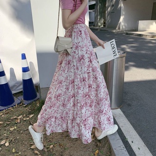 Chân váy BH voan hoa dài dáng chữ A lưng cao xếp tầng thời trang 2022