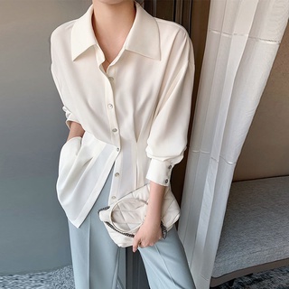 Áo Sơ Mi satin Dài Tay Thiết Kế Không Đồng Đều Thời Trang Theo Phong Cách Hàn Quốc Cho Nữ