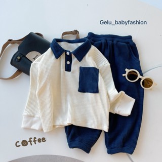 Bộ dài bé trai Bigbaby, chất thun len tổ ong mềm áo cổ polo quần lưng thun mềm cho bé trai 9-23kg