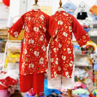 Áo dài cặp mèo thần tài siêu đáng yếu cho bé trai và gái, có size lớn cho bé gái đến 50kg - Bigbaby Shop