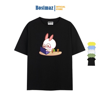 Áo thun Unisex Bosimaz TS013 cổ tròn tay lỡ phom rộng in hình thỏ, thun contton 100%, vải đẹp dày, thoáng mát.