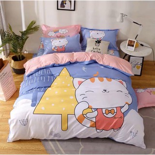 Bộ chăn ga gối Cotton Poly Bo Decor Mèo hoa, vỏ chăn mền, drap giường và 2 vỏ gối