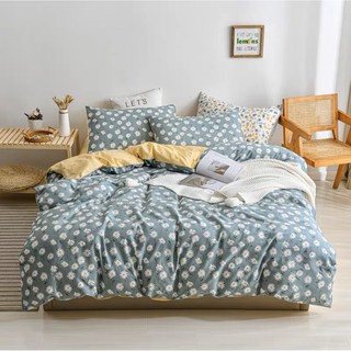 Bộ chăn ga gối Cotton poly Bo Decor Hoa cúc mới, vỏ chăn mền, drap nệm và 2 vỏ gối