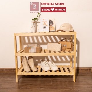Kệ Để Giày Dép Gỗ Thông 3 Tầng Đa Năng BTC DECOR - Chịu Lực Cao, Chống Mối Mọt, Sắp Xếp Gọn Đồ - Bảo Hành 12 Tháng