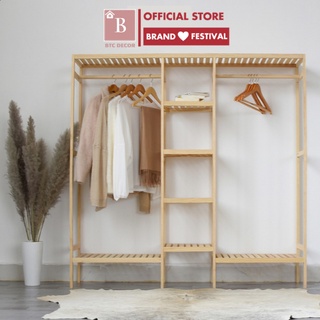 Kệ Treo Quần Áo Gỗ Thanh Đơn Gỗ Thông BTC DECOR - Kích Thước 120x76x34cm - Bảo Hành 1 Năm