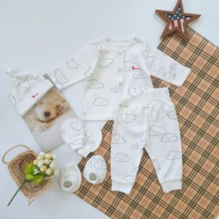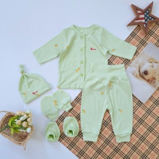 Bunnybaby - Set áo sơ sinh 4 món kèm mũ vớ cho bé 3-5kg