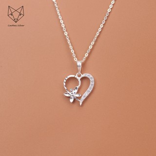 Dây Chuyền Bạc Ta Cao Cấp CaoBac Silver Hình Tim Cạnh Chuồn Chuồn Viền Đá Độc Lạ , Dễ Thương Cho Bạn Gái