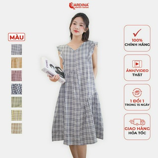 Đầm Nữ 𝐂𝐀𝐑𝐃𝐈𝐍𝐀 Chất Thô Cao Cấp Dáng Suông Kẻ Bèo Vai Lệch Tầng Trẻ Trung 3VTH06