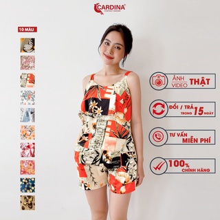 Đồ Bộ Nữ 𝐂𝐀𝐑𝐃𝐈𝐍𝐀 Chất Lụa Satin Nhật Cao Cấp Quần Đùi Áo Cổ Yếm Họa Tiết 2Y03
