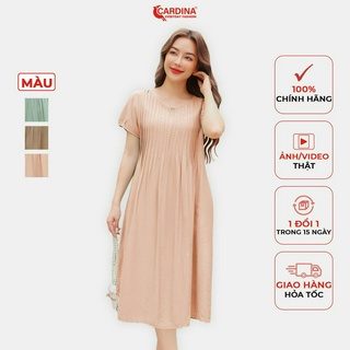 Đầm Nữ 𝐂𝐀𝐑𝐃𝐈𝐍𝐀 Chất Đũi Cao Cấp Dáng Suông Xếp Ly Ngực Tay Bồng Điệu Đà 3VD08