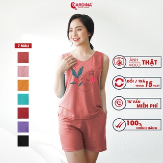 Đồ Bộ Nữ 𝐂𝐀𝐑𝐃𝐈𝐍𝐀 Chất Cotton Nhật Cao Cấp Quần Đùi Áo Sát Nách Co Giãn 4 Chiều In Lá 2CF18