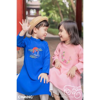 Áo dài tết Chaang lụa tằm năm mới cao cấp bóng mềm mịn chuẩn dáng đẹp thêu hình thấm hút tốt cho bé