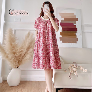Bộ bầu và sau sinh Chicmom cổ bèo có khóa cho con bú, CM003( DÀI )