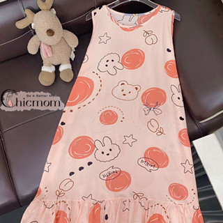 Váy Lanh Bầu sát nách Chicmom form rộng, mềm mịn, thoáng mát, họa tiết cực xinh