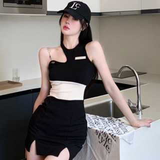 COZOK Đầm Sát Nách Cổ Yếm Phối Màu Tương Phản Quyến Rũ Thời Trang