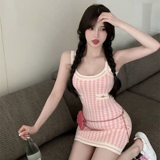 Cozok Đầm Dệt Kim Sát Nách Họa Tiết Kẻ Sọc Thời Trang Ngọt Ngào Quyến Rũ Cho Nữ