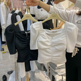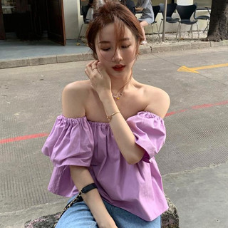 COZOK Áo Kiểu Tay Ngắn Phồng Trễ Vai Phong Cách Thời Trang Hàn Quốc