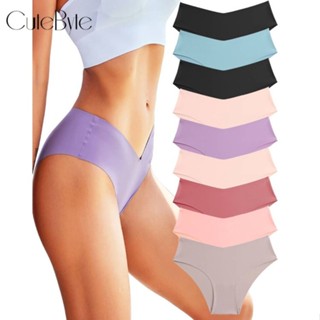 CuteByte Quần Lót Lụa Lạnh Không Đường May Lưng Thấp Màu Trơn Quyến Rũ Cho Nữ