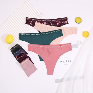 Cute Byte Bộ 3 Quần Lót Lọt Khe Phối Ren Lưới In Chữ Dễ Thương Quyến Rũ Cho Nữ