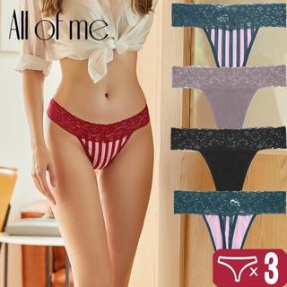 Bộ 3 quần lót lọt khe CUTEBYTE phối ren phong cách quyến rũ dễ thương thời trang cho nữ