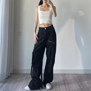 DaDuHey New American Style Large Pocket Cargo Pants Women's High Waist Loose Cargo Pants Plus Size Trousers