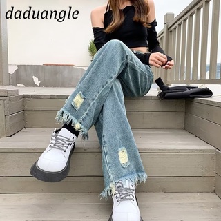 Quần jean DADUHEY lưng cao ống rộng thiết kế rách phong cách Mỹ đường phố retro size lớn thời trang mới dành cho nữ