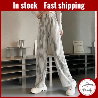 Quần dài DADUHEY lưng cao dáng rộng họa tiết sọc thể thao thời trang phong cách đường phố Mỹ